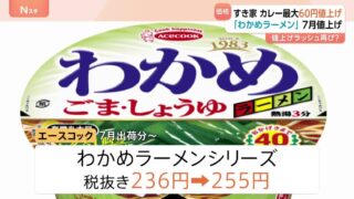 ニュー速エースコックがカップ麺 約30品目を値上げ わかめラーメンシリーズ236円→255円 7月出荷分~