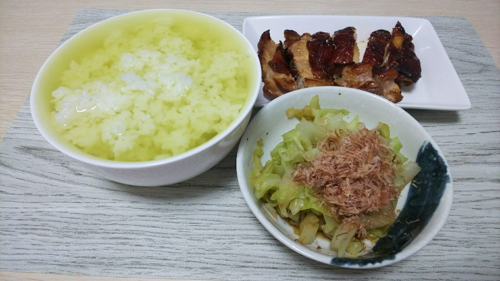 (´・ω・)エヘヘ✨ す茶漬け美味しいの✨ しょっぱめの鶏もも肉とよく合うの✨