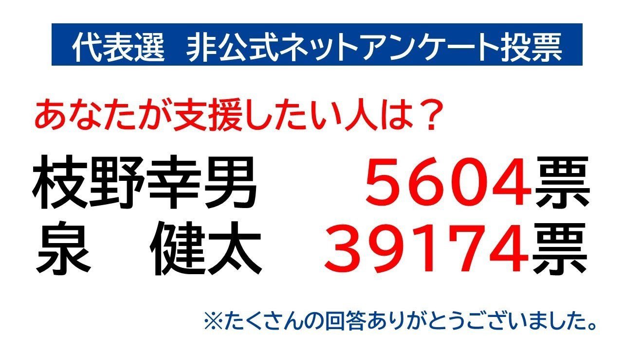 立憲民主党「代表選をネット投票します!」→枝野大敗→「非公式のネットアンケですが何か」
