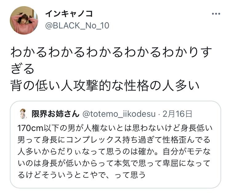 身長とか関係無しに差別的表現の宝石箱やないか! - 22 : 2022/06/30(木) 08:00:01.89 ID:4LRPLUuE0