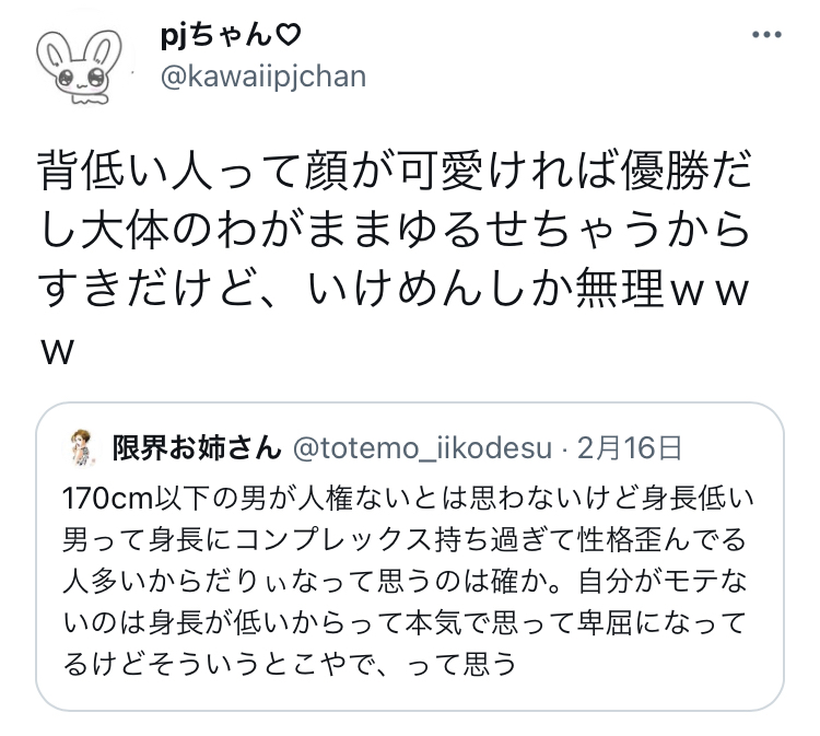 - お前らは背高くてもイケメンじゃないとむりだろ