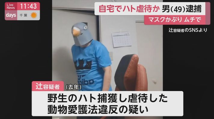 - 【独自】“鳥マスク男”が野生のハトを捕獲し虐待か 49歳男を逮捕へ 警視庁