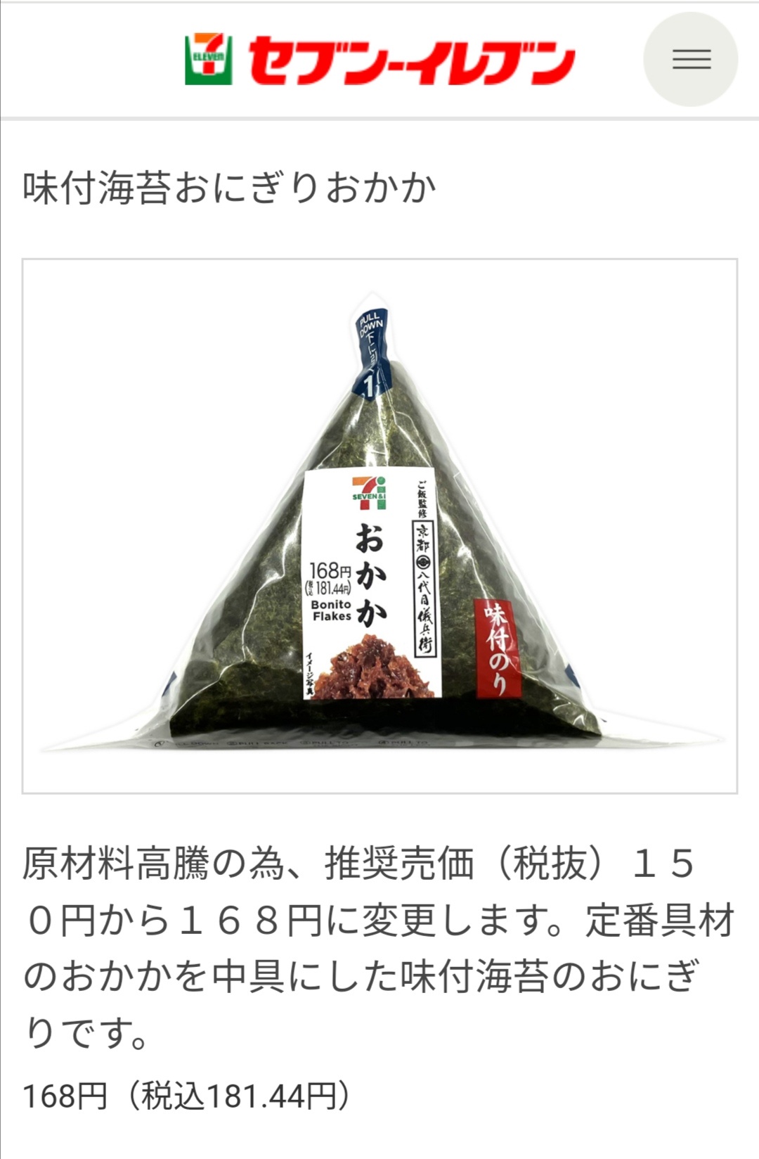セブンイレブンさん、おにぎり最弱の具「おかか」が(181円)wwwwwwwwww