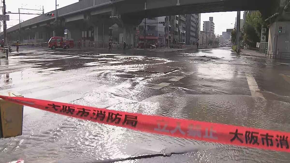 大阪 東淀川区 交差点で水噴き出し冠水 水道管破損か|NHK 関西のニュース