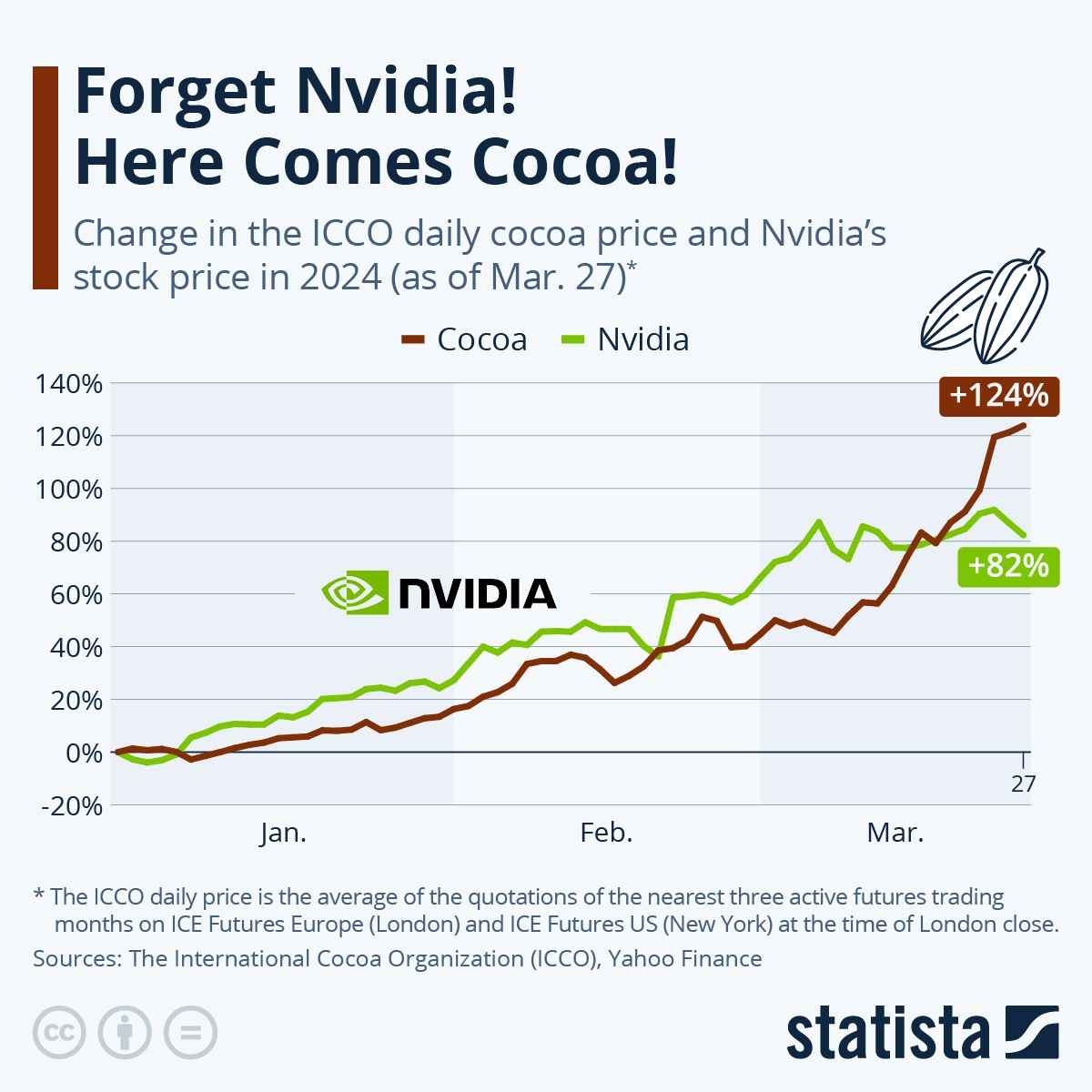 ImgurImgur: The magic of the Internetimgur.com Infographic: Forget Nvidia! Here Comes Cocoa!This chart compares the change in global cocoa prices in 2024 to the change in Nvidia's stock price during the same period.www.statista.com