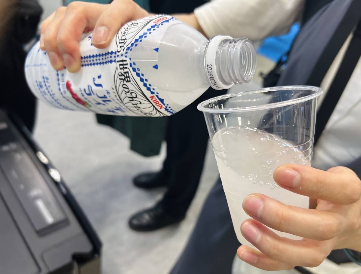 ペットボトルを振るだけで、冷やした飲料が瞬時に凍り、シャーベット状の「アイススラリー」が出来上がる――シャープ(大阪府堺市)が5月22日に法人向けのレンタルを始めた「アイススラリー冷蔵庫」が注目を集めている。7月24日に開幕した展示会「猛暑対策展」(東京ビッグサイト、7月24~26日)の会場では、企業の担当者が実機に足を止め、次々と試飲する姿が見られた。