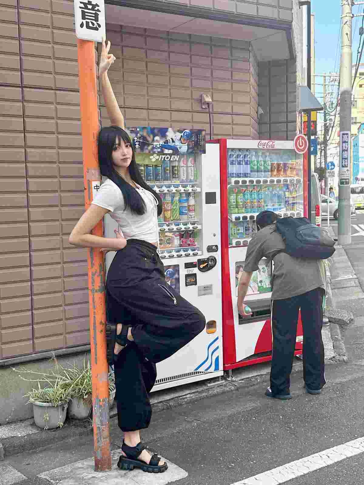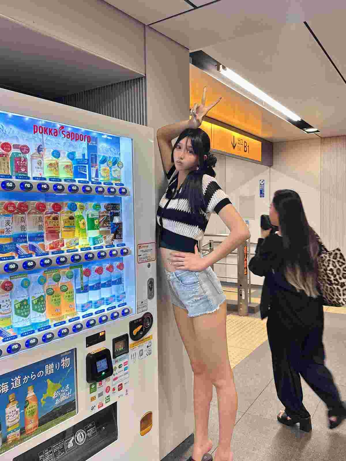 1枚目自販機って183cmなのに背伸びして同じ?