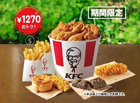 KFCの看板メニュー「オリジナルチキン」に、選べるサイドメニューが付いた大人数で楽しめるセット。単品購入と比較して最大1,270円“おトク”だという。一部を除く「ケンタッキーフライドチキン(KFC)」店舗で取り扱う。