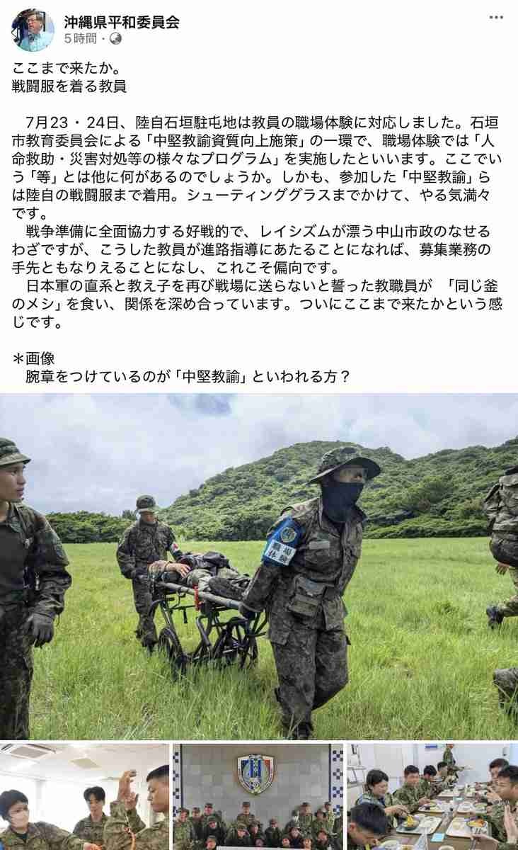7月23・24日、陸自石垣駐屯地は教員の職場体験に対応しました。石垣市教育委員会による「中堅教諭資質向上施策」の一環で、職場体験では「人命救助・災害対処等の様々なプログラム」を実施したといいま…