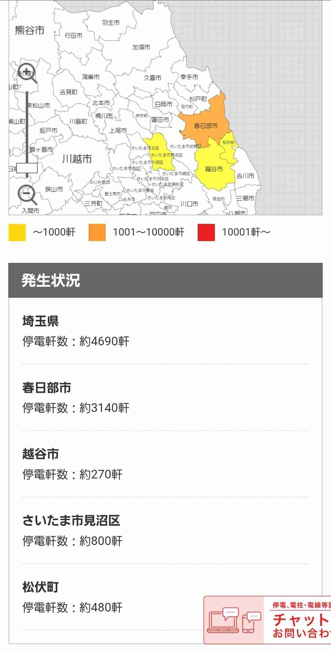 さいたま市でも浦和区や大宮区とか中央区は停電とか聞かない