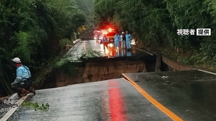 警察などによりますと、石川県七尾市中島町小牧の国道249号で12日午前5時前、道路が幅40メートルから50メートルにわたって陥没しました。