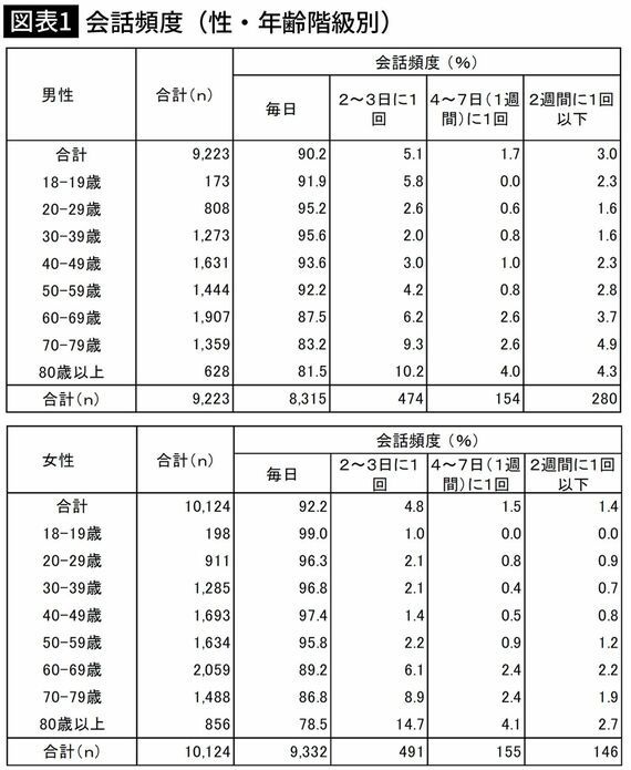 【図表1】会話頻度(性・年齢階級別)