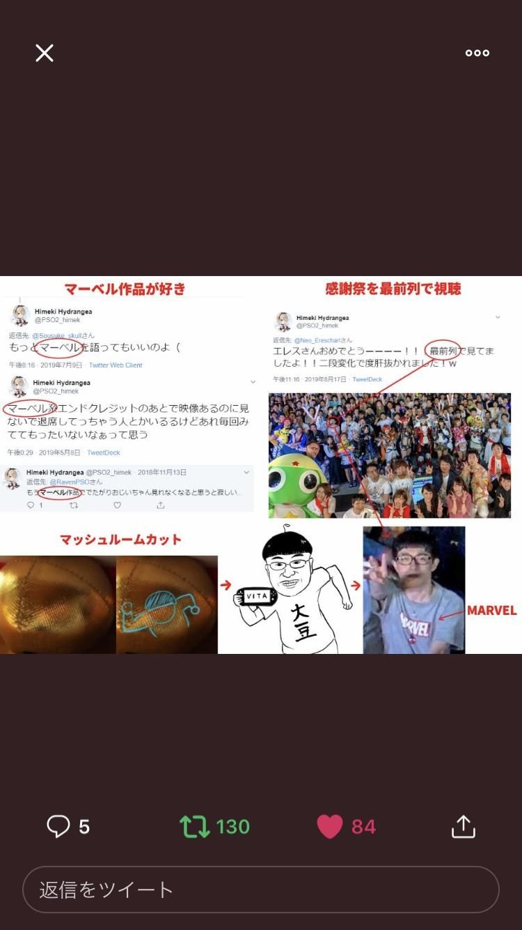 ヒメキの過去のツイートからマーベル好きだと判明し疑惑の人物のTシャツにマーベルの文字