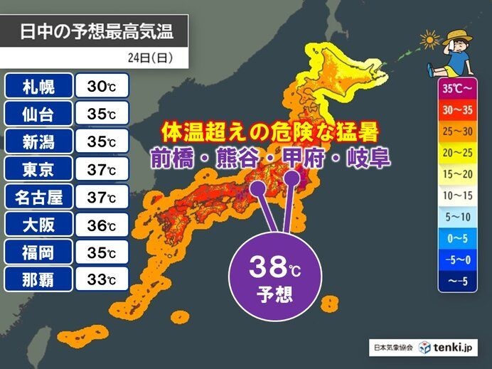 24日は都心で午前から35℃超え 8月の猛暑日最多を更新 午後は40℃に迫る所も