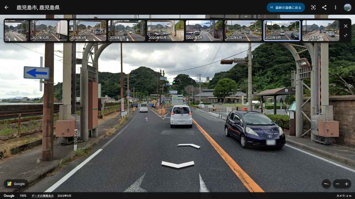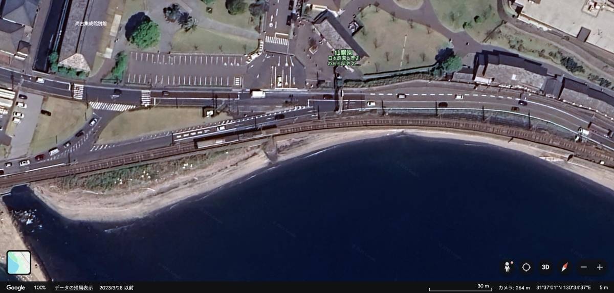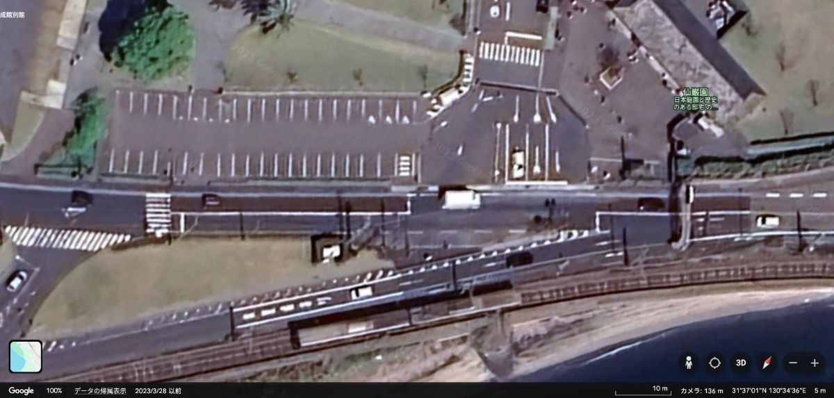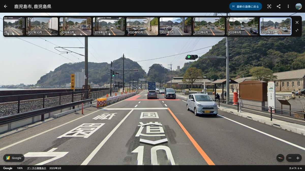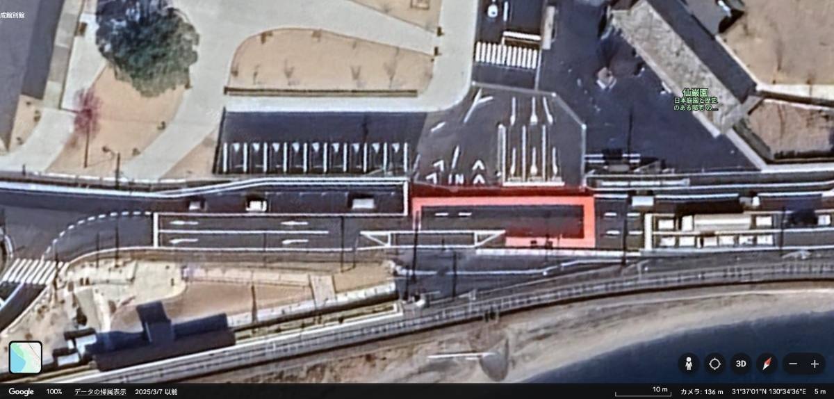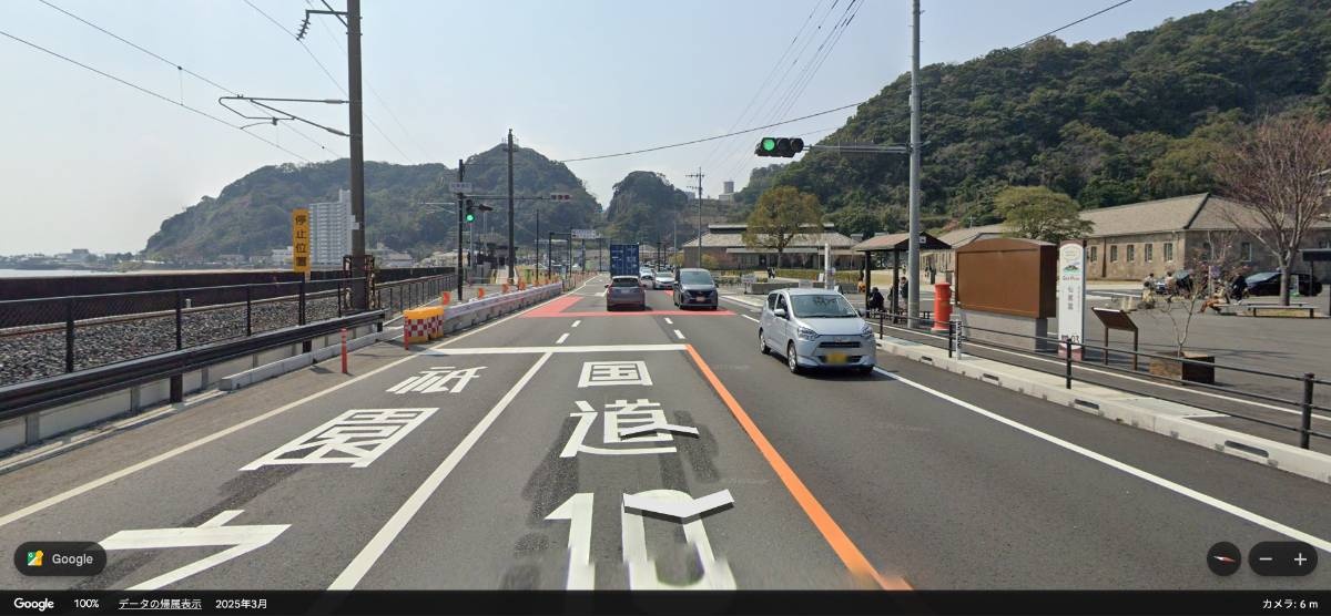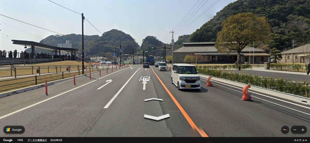 仙巌園前付近の国道10号は昨年3月に通行ルートを変更。左折レーンを新設し、磯方面に向かう一方通行の市道は廃止した。
