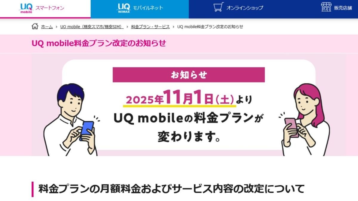 KDDI(au)は8月20日、格安SIMブランドのUQモバイルの基本料金を2025年11月1日から値上げすることを発表しました。