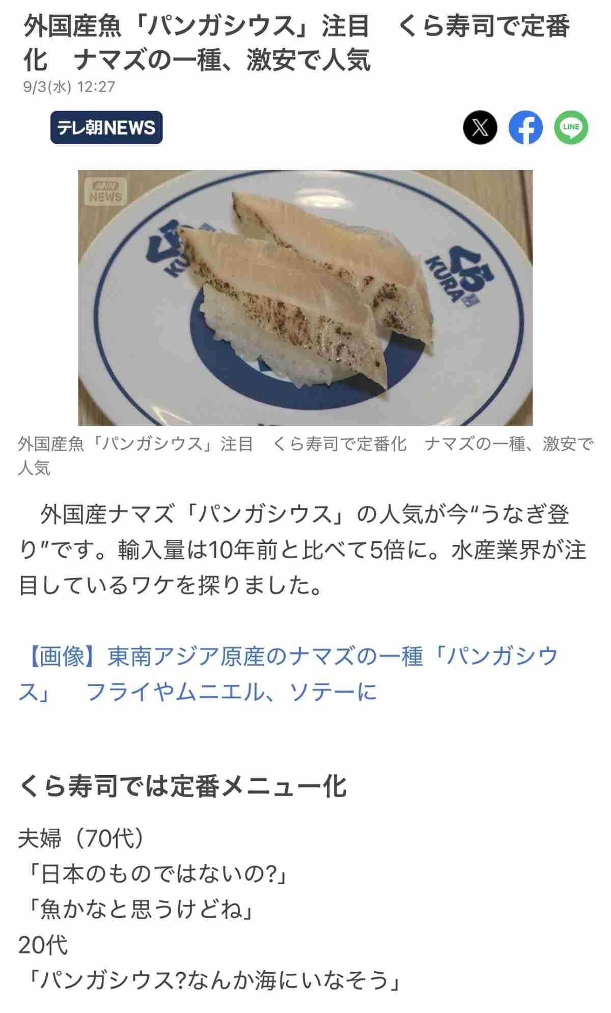 安倍さん、円が弱ったからウナギがパンガシウスに変わったんだよ😭