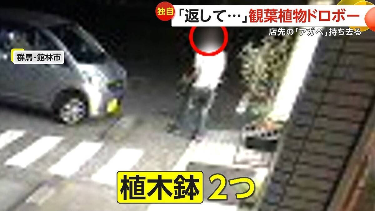 群馬・館林市で8月22日午前3時過ぎ、防犯カメラが犯行の一部始終を捉えた。映っていたのは、店の植物を持ち去るドロボーの姿だ。