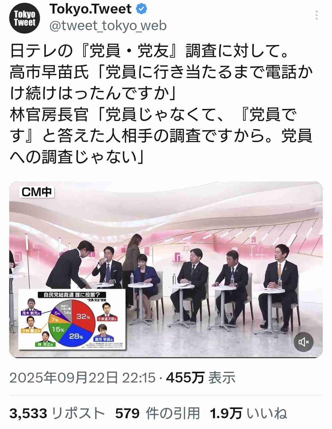 高市氏「党員に行き当たるまで電話かけ続けたの?」 →林氏「これ党員への調査じゃないよ」