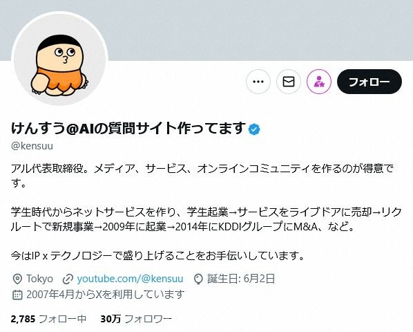 9/27(土) 15:56「けんすう」で知られる実業家・古川健介氏が27日に自身のX(旧ツイッター)を更新し、ある言葉をめぐるネットの論争に言及した。
