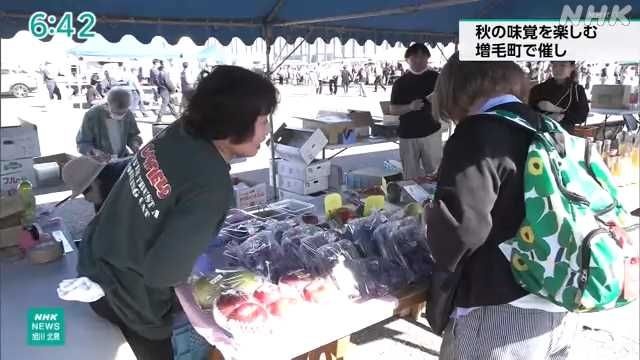 日本海側の増毛町で、旬の秋サケや特産のフルーツを味わえる催しが開かれ、多くの家族連れなどでにぎわいました。