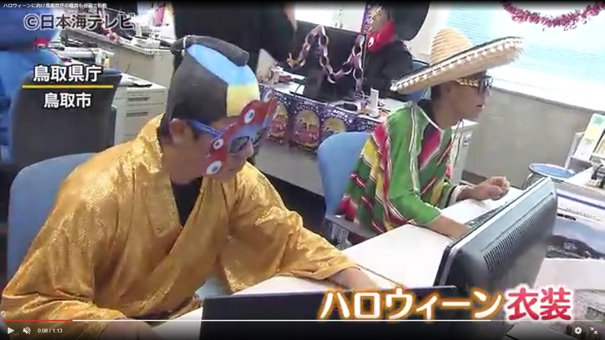 職員がハロウィーン仮装で勤務 鳥取県庁