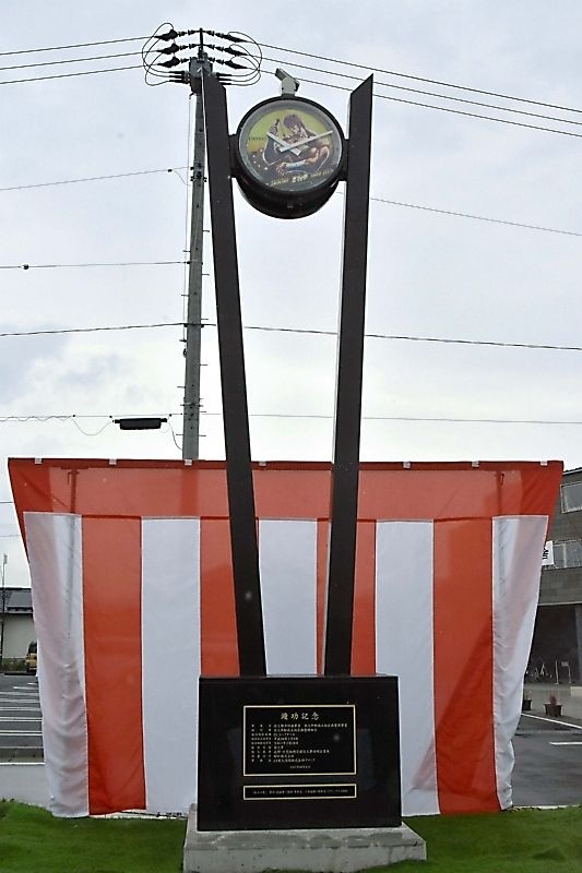 公園は2022年に整備。漫画「北斗の拳」原作者の武論尊(ぶろんそん)さん(78)=佐久市出身=が建設した「さくまんが舎」に近く、武論尊さんらの協力で文字盤に主人公ケンシロウをデザインした。