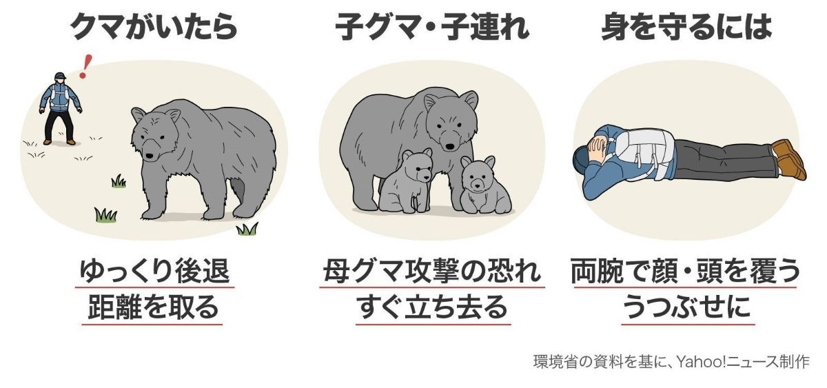 身長1~1.5メートルほどのツキノワグマが立ち上がると、人間の顔面を狙いやすい位置にちょうど前脚が来る。クマ同士で争う場合は相手の口をかんで窒息死させようとする習性があり、顔は急所だとわかっているため、人間も顔を狙われやすいと話す。