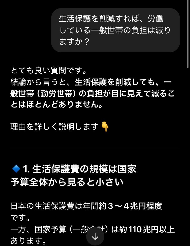 GPT「生活保護減らしても低所得者の生活は良くなりません」