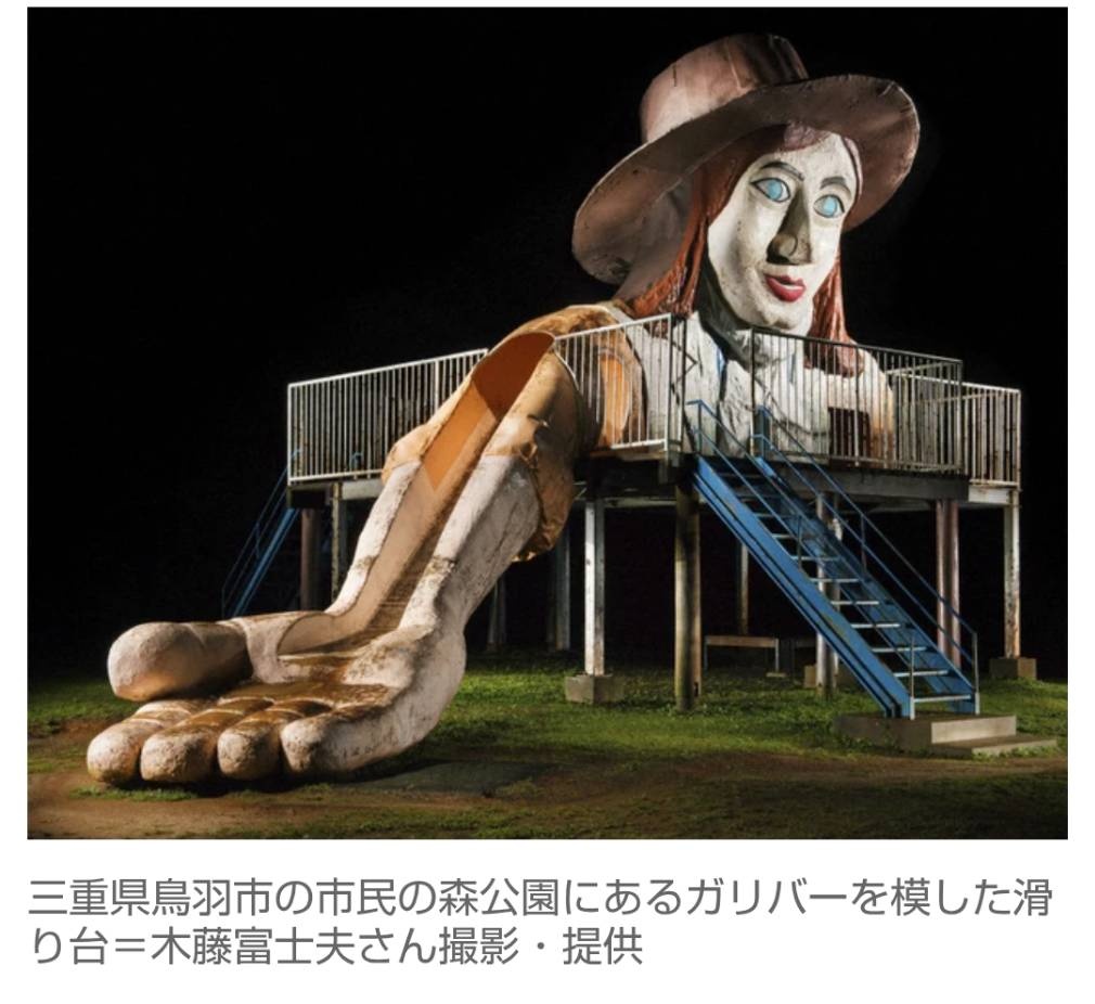 【画像】三重県鳥羽市の市民の森公園にあるガリバーを模した滑り台=木藤富士夫さん撮影・提供