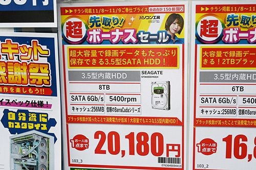 2万円を切る8TB HDDが7年半ぶりに消滅、東芝「N300」の24TBモデルが販売開始 [11月後半のHDD価格]