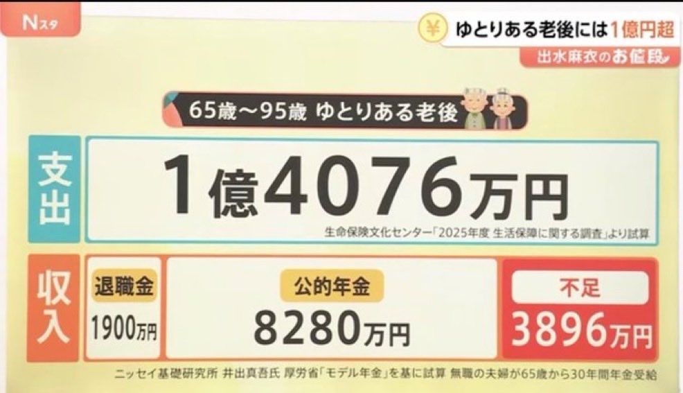 仮に年金制度無くなったら自力で1億4000万貯める必要があるってことやん