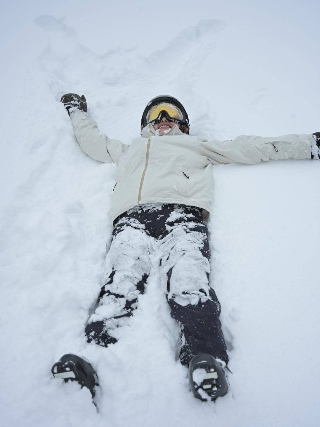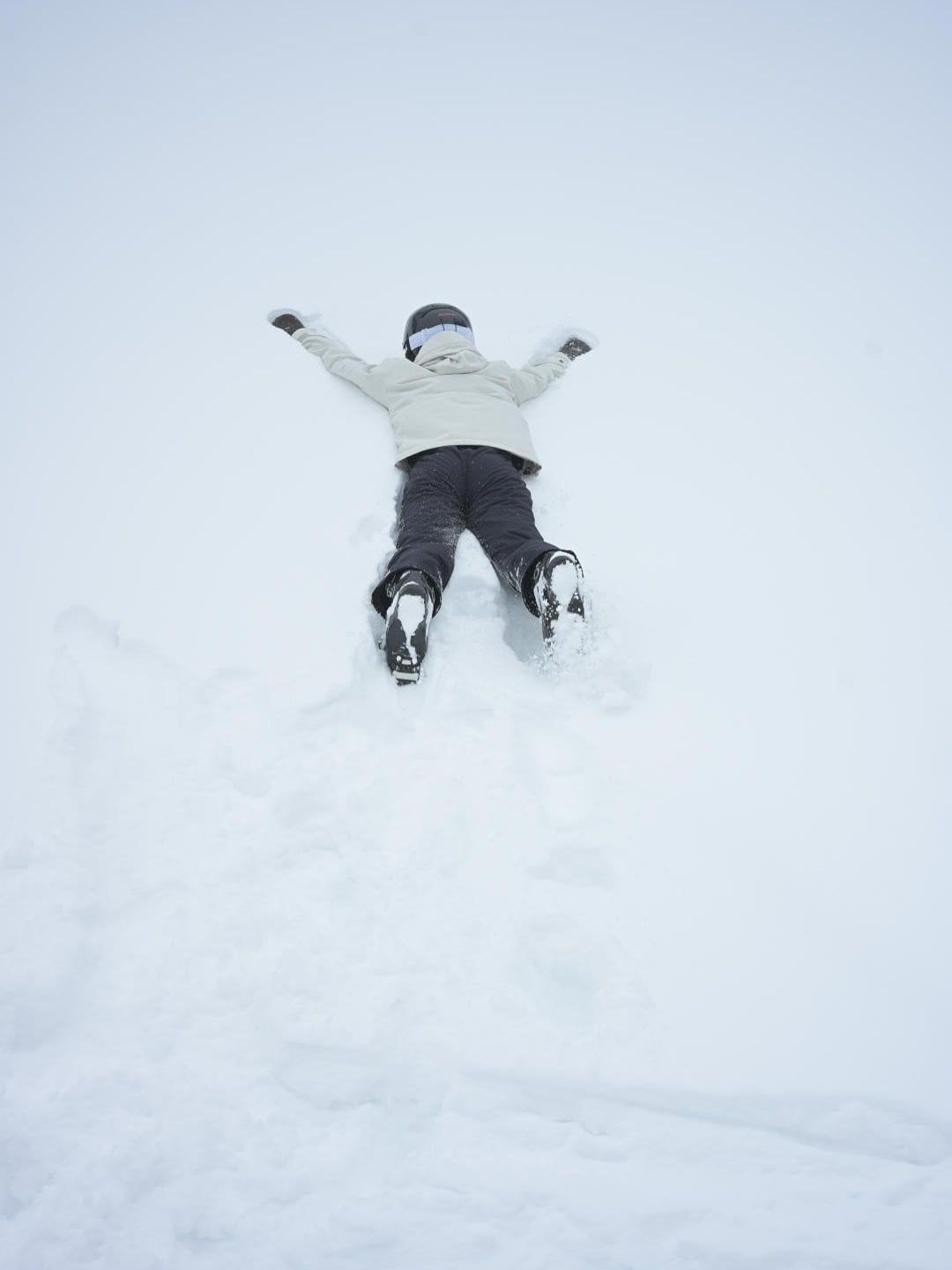 スキーを外して雪だまりに飛び込んだような写真も投稿した井上さんは「外気は冷たいけど、動いているので体はホクホクしてる感覚が気持ちよかった!」「露天風呂みたいだなと思いました」と実感を込めてテキスト。