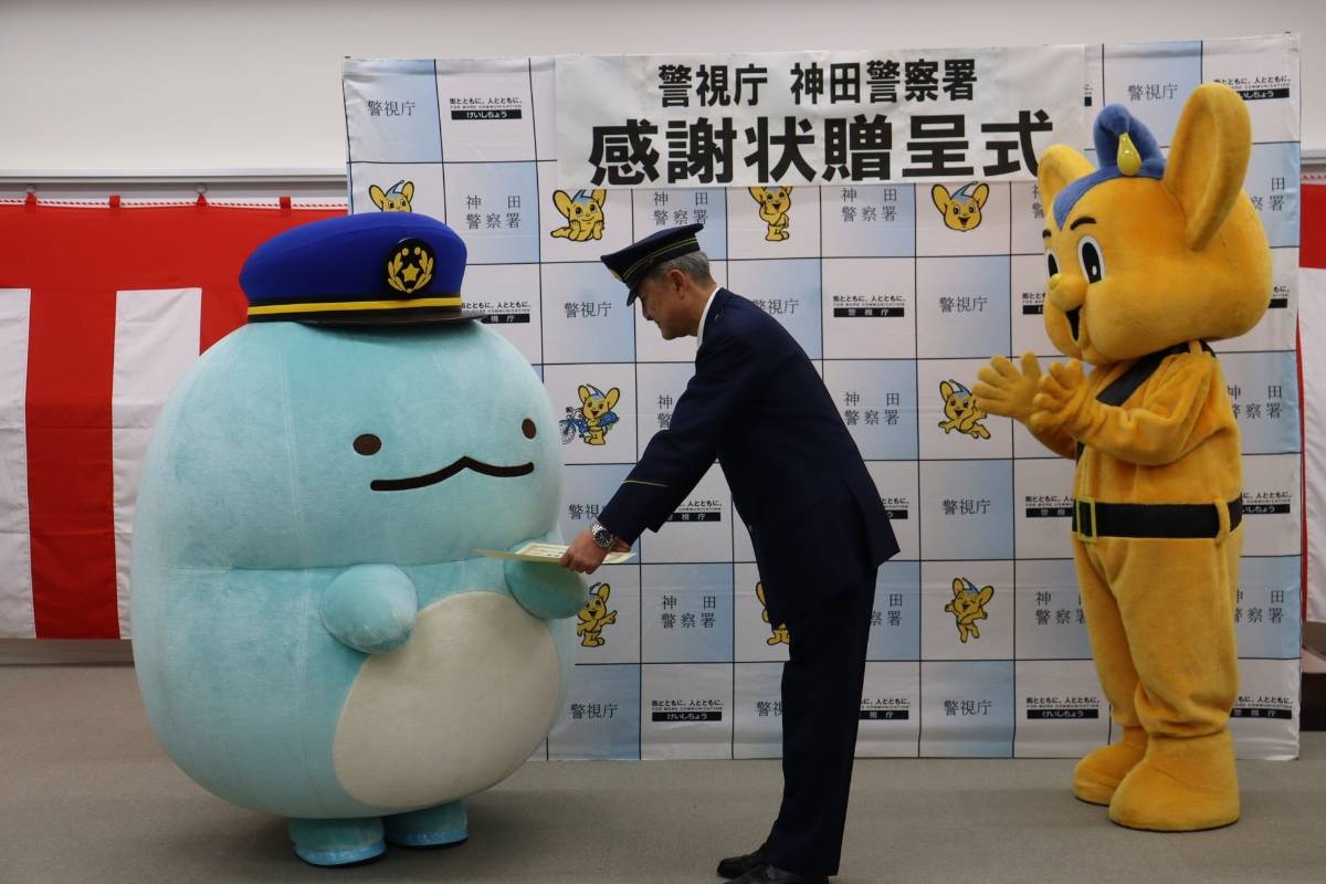 これは、神田署管内の小学校の新一年生およそ120人のランドセルカバーに、すみっコぐらしのデザインが提供されたことから行われたもので、交通ルールを守ることの意識づけや、交通事故防止に貢献することから感謝状の贈呈を決めたということです。