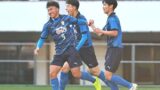 高川学園vs福井商戦は前半19分に均衡が破れた。高川学園はGKのパントキックを1年生FW原田が強靭なフィジカルで収め、そのまま裏のスペースへ猛進。豪快な20メートル弾でネットを揺らし、Nack5会場のどよめきを誘った。30分にはDF沖藤のクロスボールがそのままゴールに吸い込まれて2点目。40分にもFW横田にゴールが生まれて俄然優位に試合を進める。後半は両チームともにゴールを奪えず、高川学園が3-0の勝利を収めた。