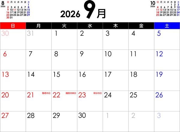 具体的には、「敬老の日」である9月21日(月・祝)と「秋分の日」である9月23日(水・祝)に挟まれた9月22日(火)が、法律に従って自動的に休日となる。
