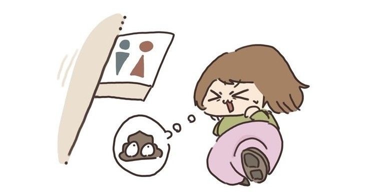 排便がしたくてトイレに駆け込む人のイラスト(絵:おね)