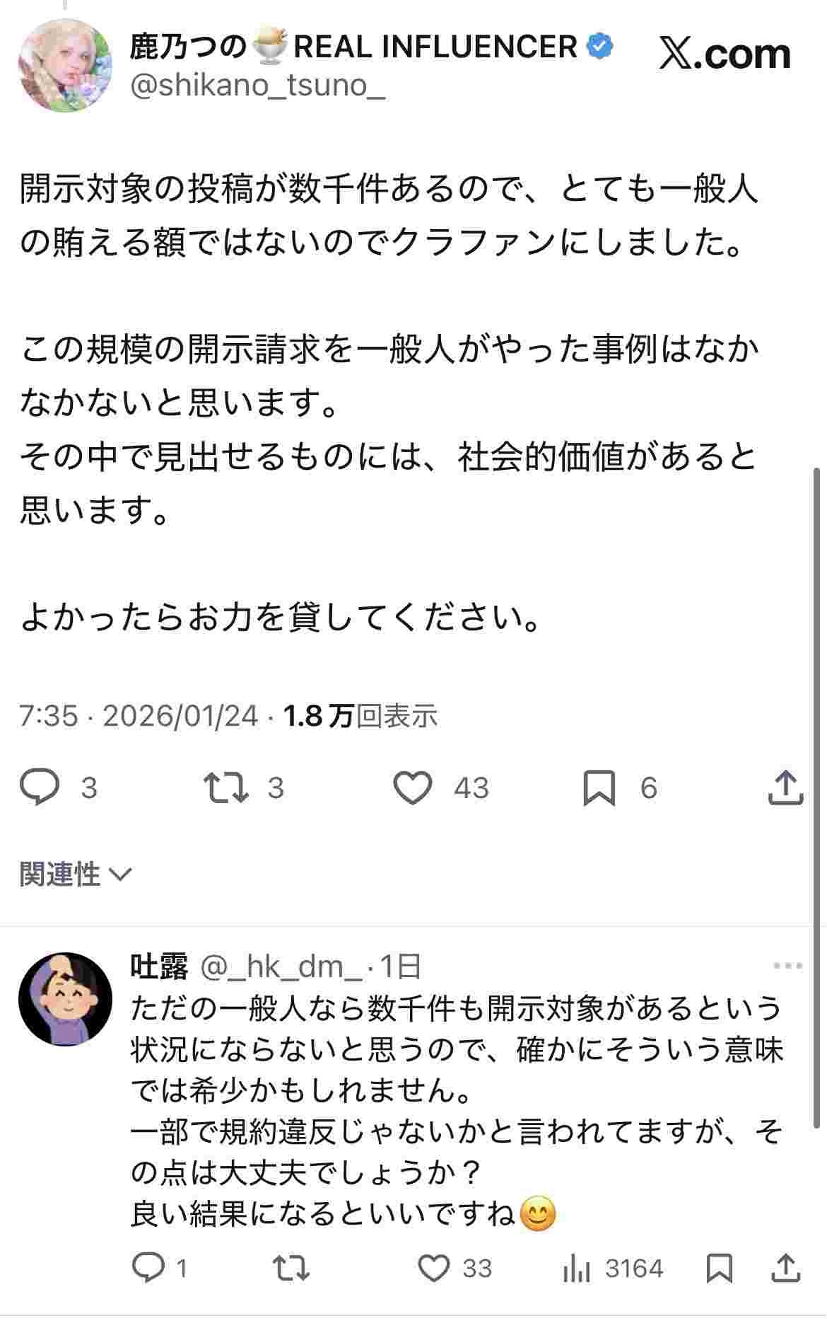 え、開示請求の費用をクラファンで集めようとしてんの?