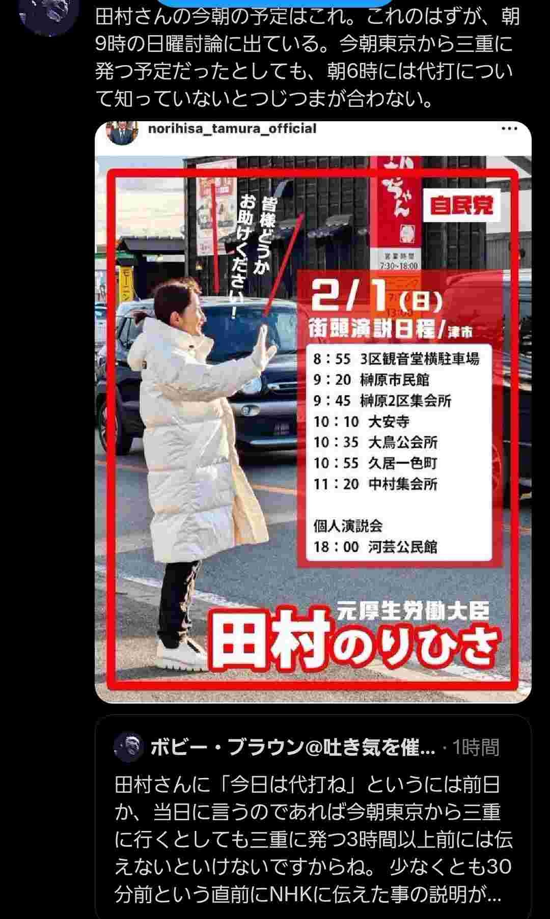 https://x.com/chat_miew/status/2017961979953176983田村さんは2月1日は地元三重で演説する予定だった