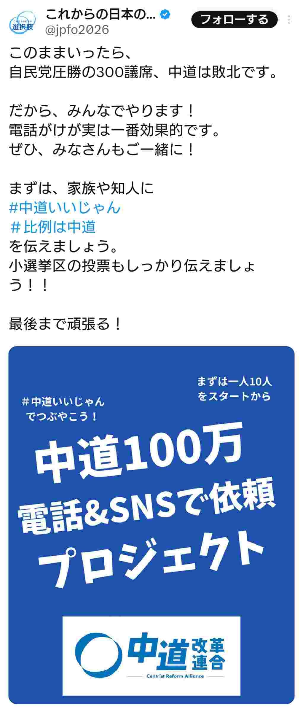 このままいったら中道は敗北です。だからやります!電話&SNSで依頼プロジェクト