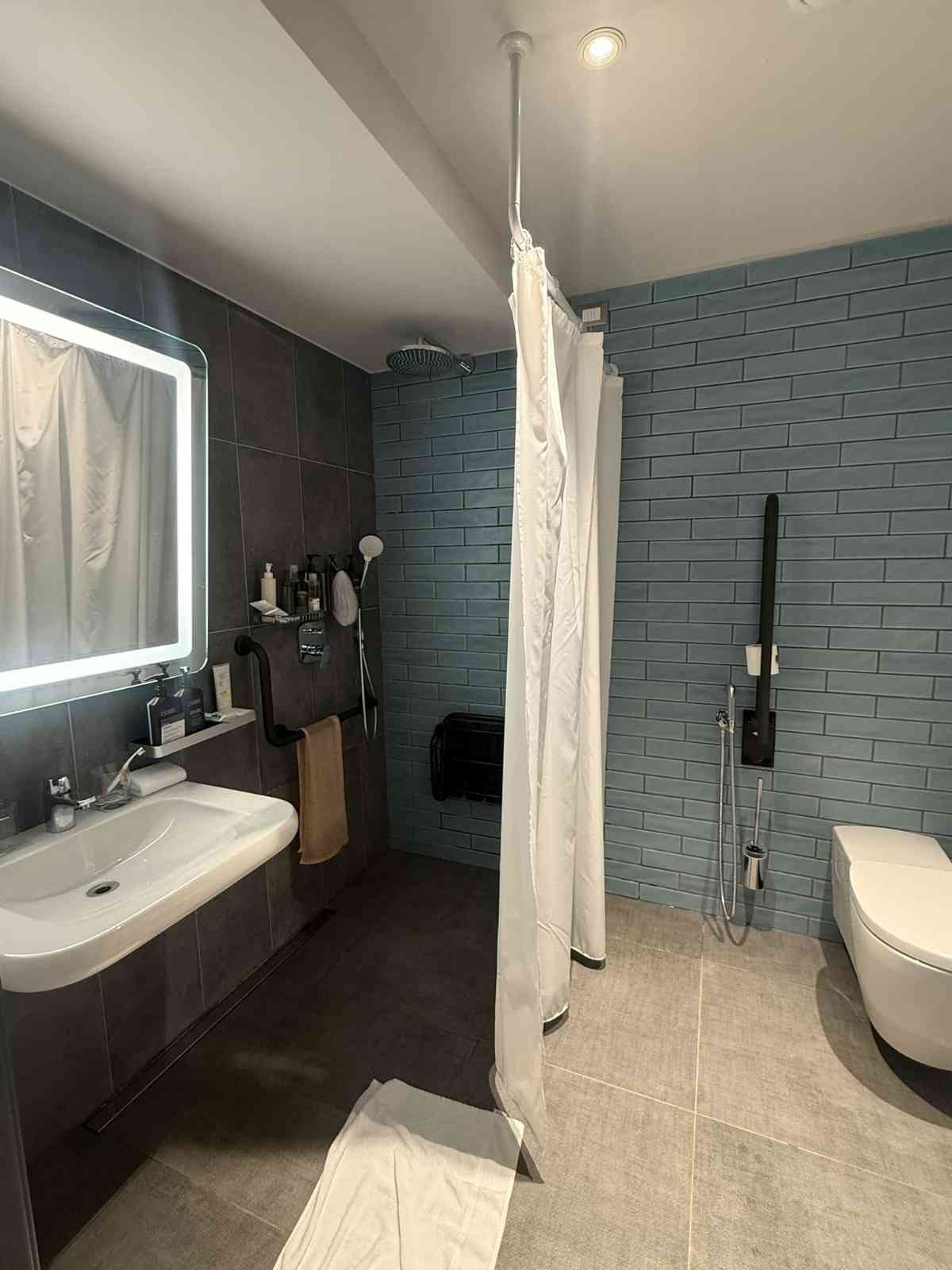 今回、宿泊するホテルのシャワールームに衝撃を受けたようだ。