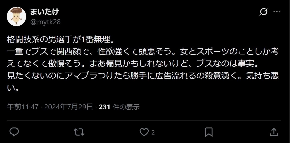 格闘家系の関西顔で一重ブサイクの男はマジで無理