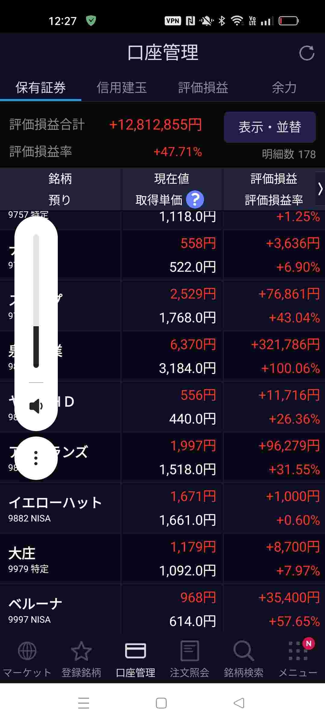 原資200万で60万損失出して血反吐吐いても安定株に切り替えてリスク取り続けて日本株の含み益27万ある
