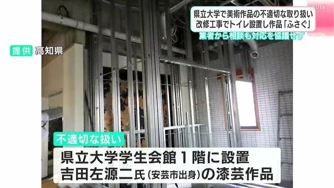 漆芸作品前にトイレ設置、完全にふさぐ 工事の段階で業者から大学へ相談も…外部からの問い合わせで発覚(高知県立大学)(テレビ高知) - Yahoo!ニュース