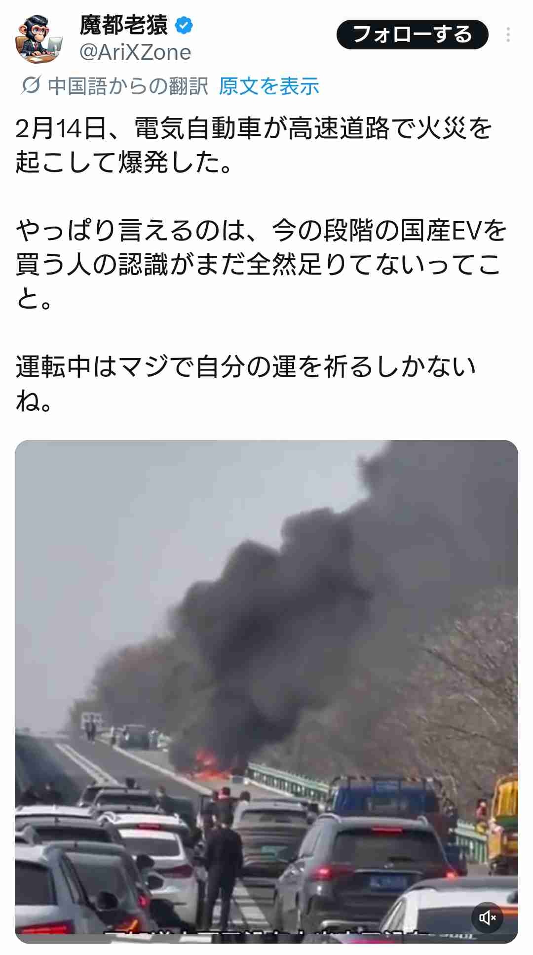 日本で中国産EVが炎上したのかと思ったら中国の話か