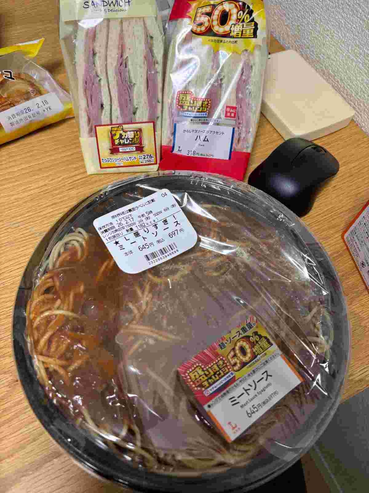 カツサンド増量はよかったけどハムサンド不味かったわ
