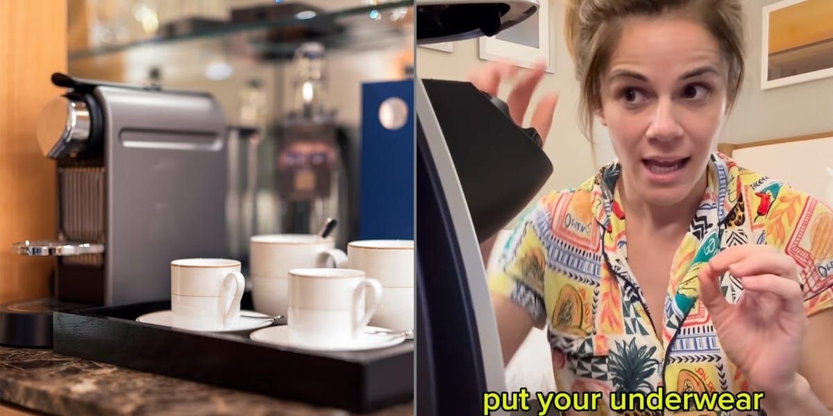 最近(2025-2026年頃)のアメリカのソーシャルメディアで話題になったもので、インフルエンサーのTara Woodcox(タラ・ウッドコックス)がホテルの部屋にあるコーヒーメーカーを使って下着(パンティーやunderwear)を洗う「travel hack」を動画で紹介した件です。