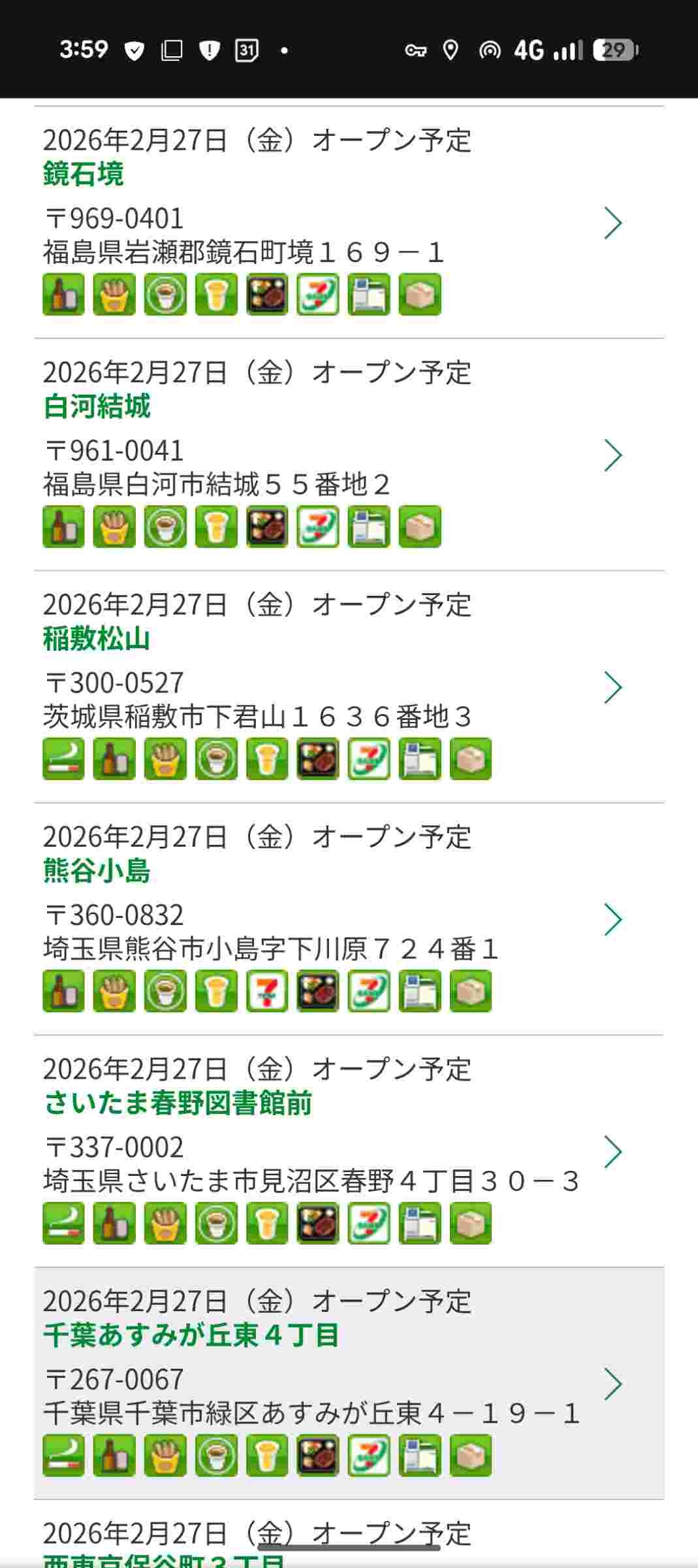 成城6丁目も乗ってるけどすぐ近くのセブンが月末に閉店するから、成城は単なる1減1増だぞ