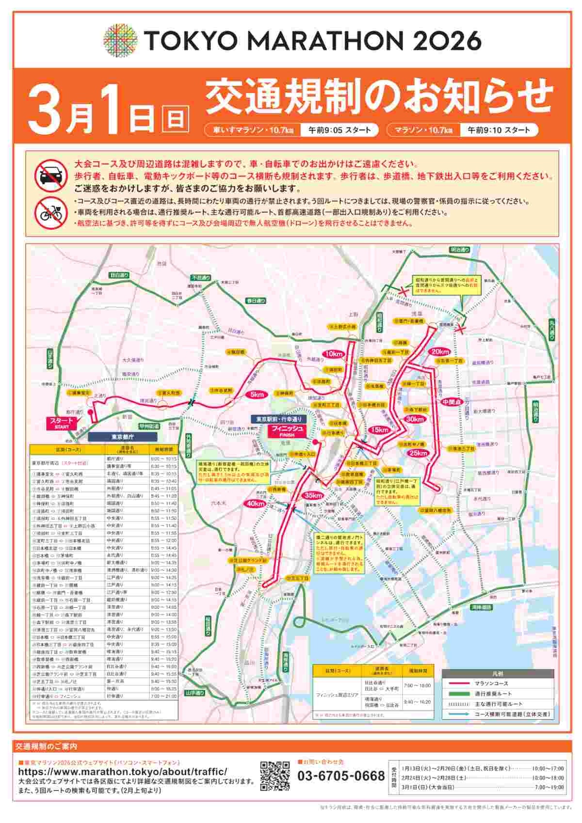 2026年2月27日東京マラソン財団と警視庁は、3月1日の「東京マラソン2026」開催に伴う交通規制について公式サイトで案内している。