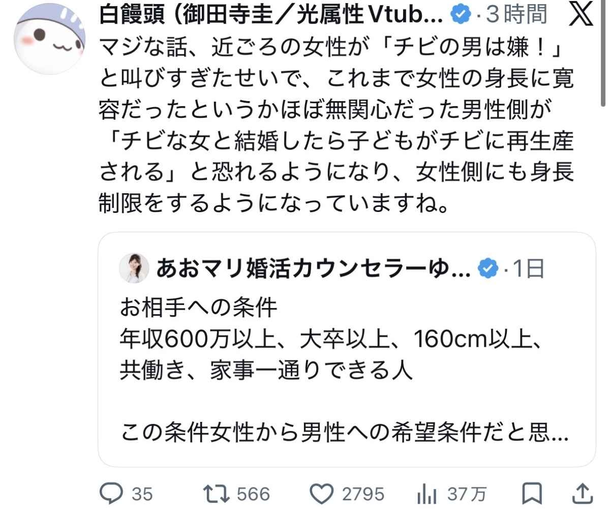 煽りとかじゃなくて自分の子供がチビになる可能性ある以上チビ女が忌避されるのは当たり前の話よな